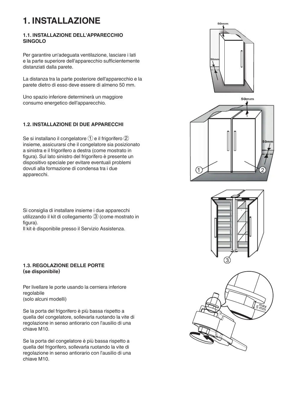 1.2. INSTALLATION DE DEUX APPAREILS Durant l'installation du congélateur 1 et du réfrigérateur 2 , assurez-vous que le congélateur est placé à gauche et le réfrigérateur à droite (comme illustré sur l'image). Sur le côté gauche du réfrigérateur se trouve un dispositif spécial permettant d'éviter les problèmes de condensation entre les appareils.