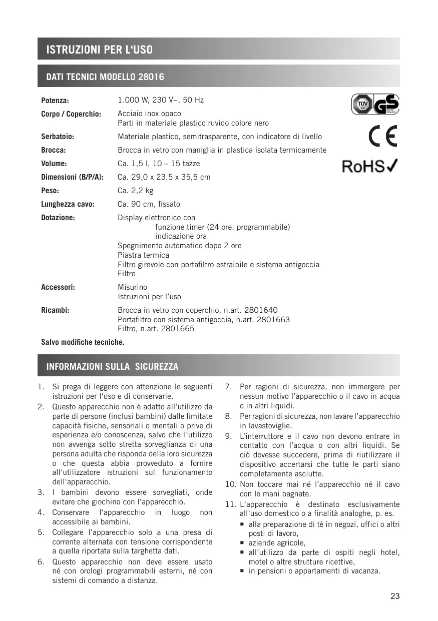 MANUALE UTENTE 28016 UNOLD