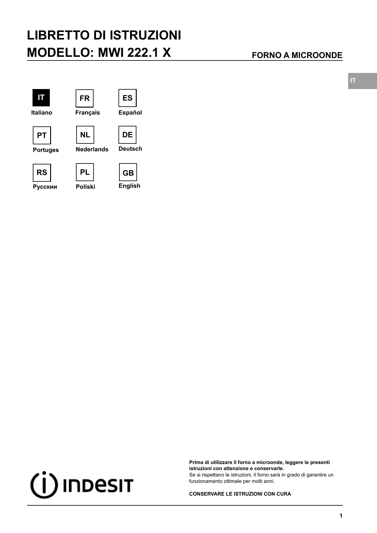 MWI 222.1 - Microonde INDESIT - Manuale utente e istruzioni gratuiti