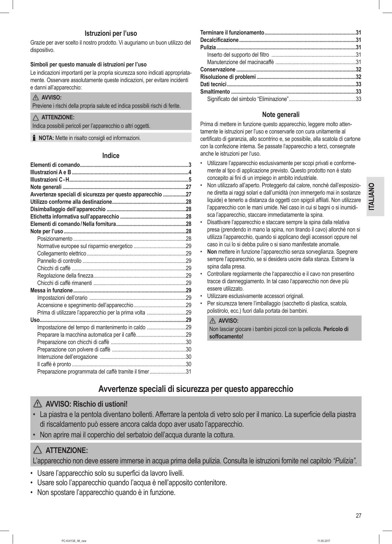 MANUALE UTENTE PC-KA 1138 PROFICOOK