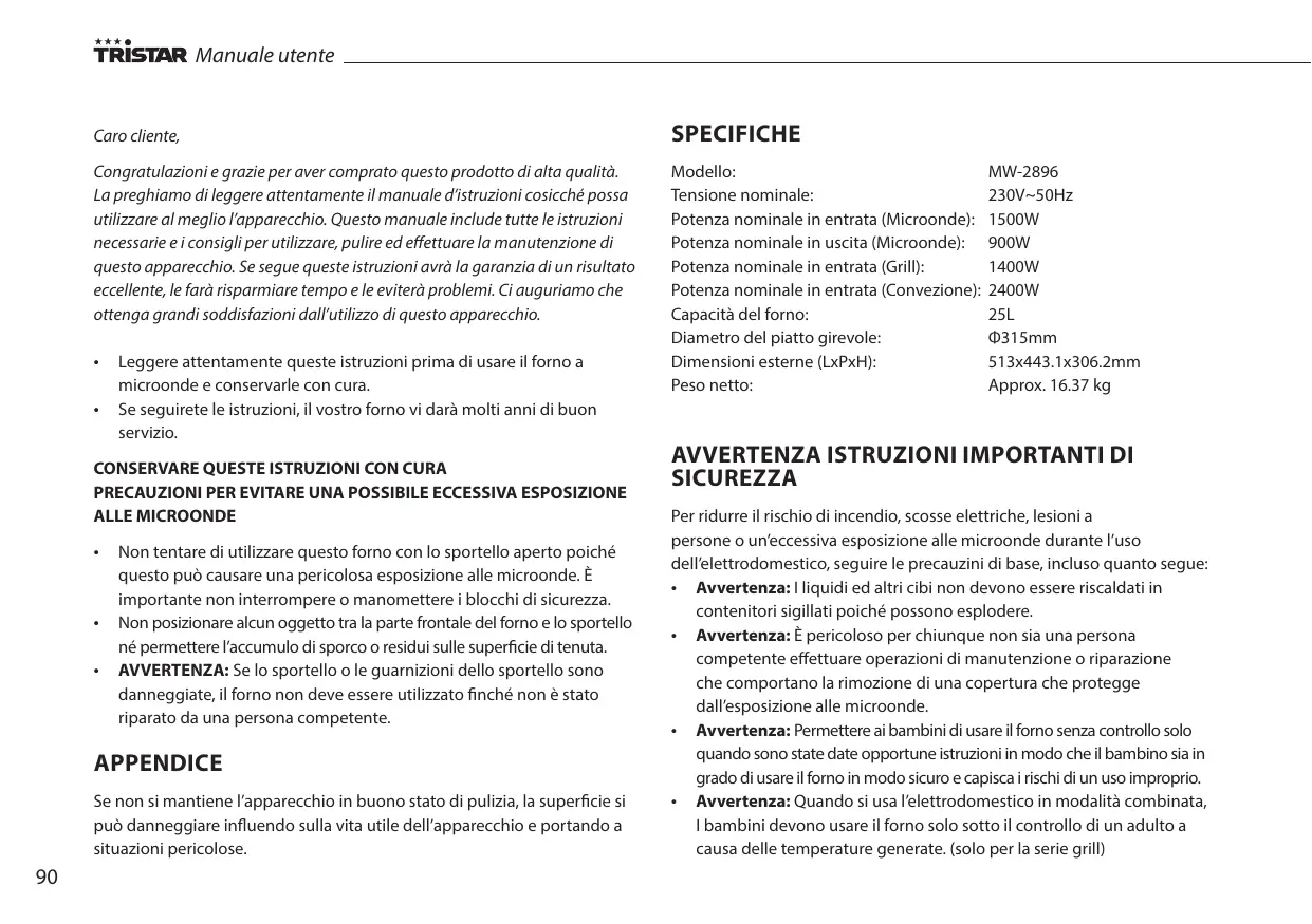 MW-2896 - Microonde TRISTAR - Manuale utente e istruzioni gratuiti