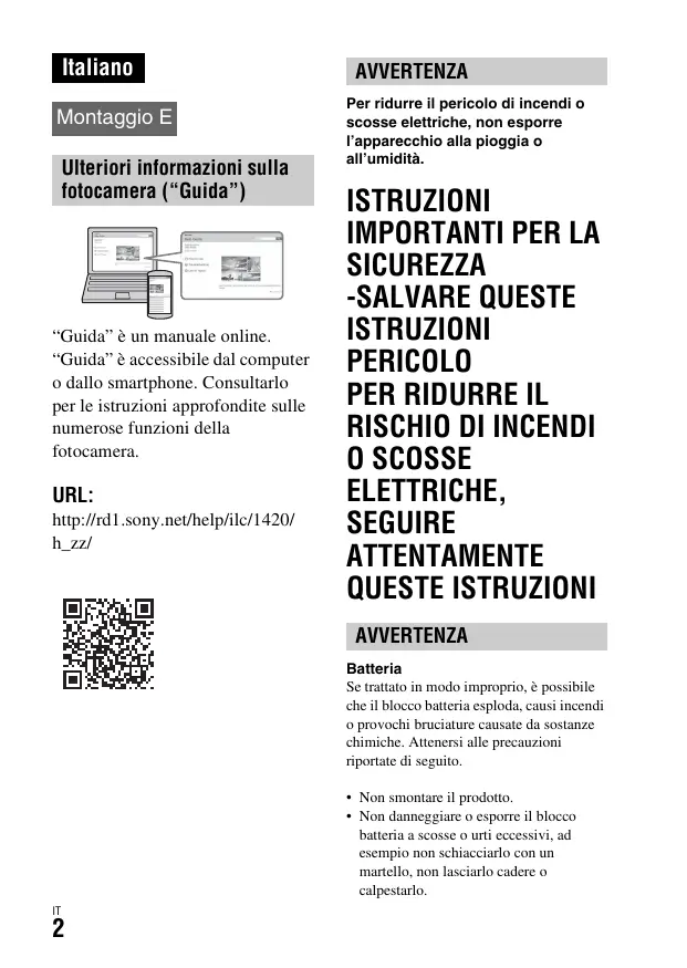 Scarica le istruzioni per il tuo Fotocamera digitale in formato PDF gratuitamente! Trova il tuo manuale ALPHA 7S - SONY e riprendi in mano il tuo dispositivo elettronico. In questa pagina sono pubblicati tutti i documenti necessari per l'utilizzo del tuo dispositivo. ALPHA 7S del marchio SONY.