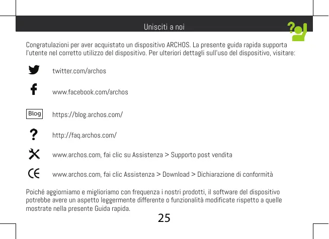 Scarica le istruzioni per il tuo Smartphone in formato PDF gratuitamente! Trova il tuo manuale DIAMOND 2 PLUS - ARCHOS e riprendi in mano il tuo dispositivo elettronico. In questa pagina sono pubblicati tutti i documenti necessari per l'utilizzo del tuo dispositivo. DIAMOND 2 PLUS del marchio ARCHOS.