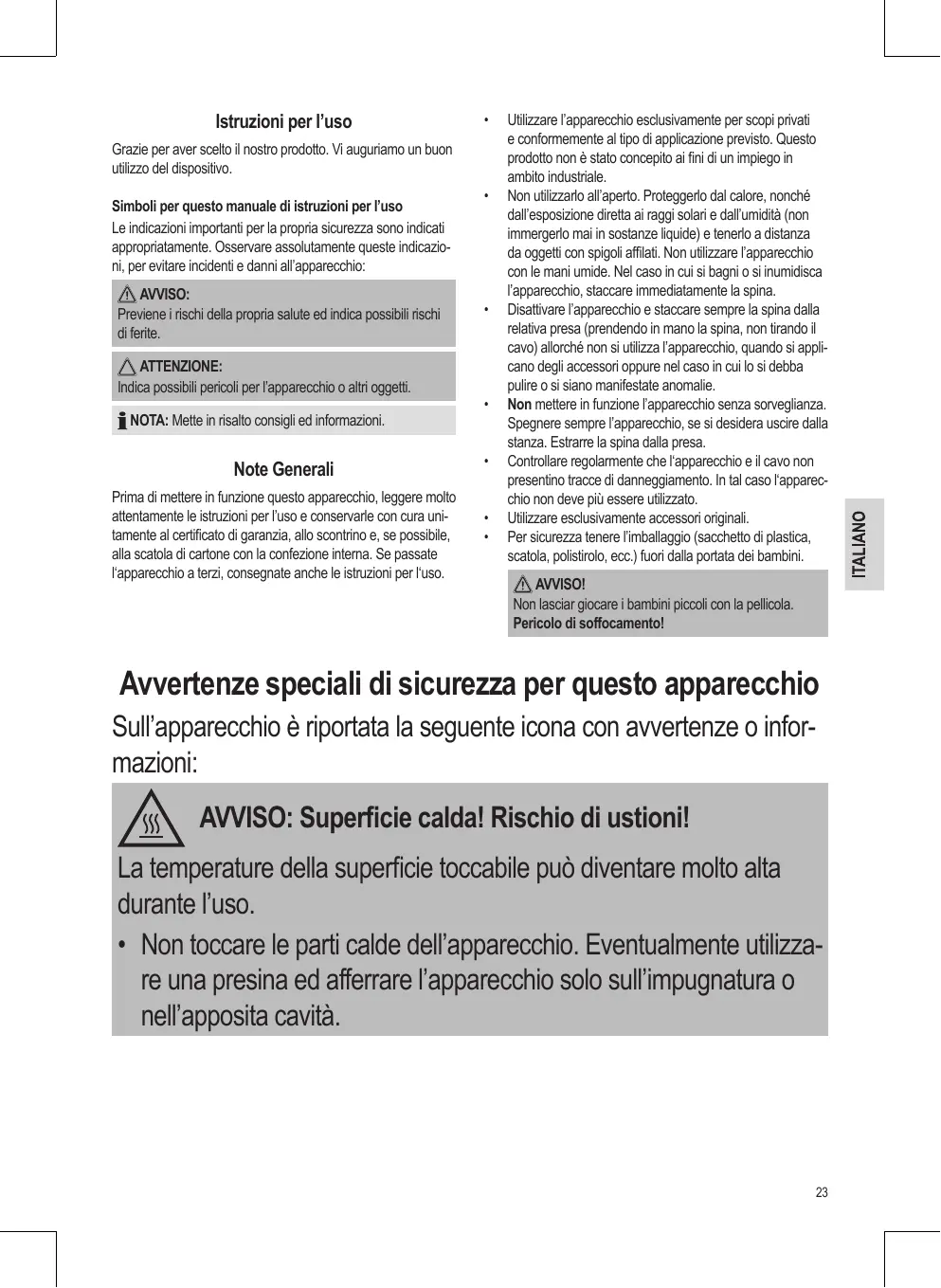 Sur le produit, vous trouverez l’icône suivant indiquant un avertissement ou des informations : AVERTISSEMENT : Surface chaude ! Risque de brûlures ! La température de la surface palpable peut devenir très élevée pendant utilisation. • Ne touchez pas les parties chaudes de l’appareil. En cas de besoin, utilisez une manique et saisissez l’appareil sur la poignée voire son creux seulement.