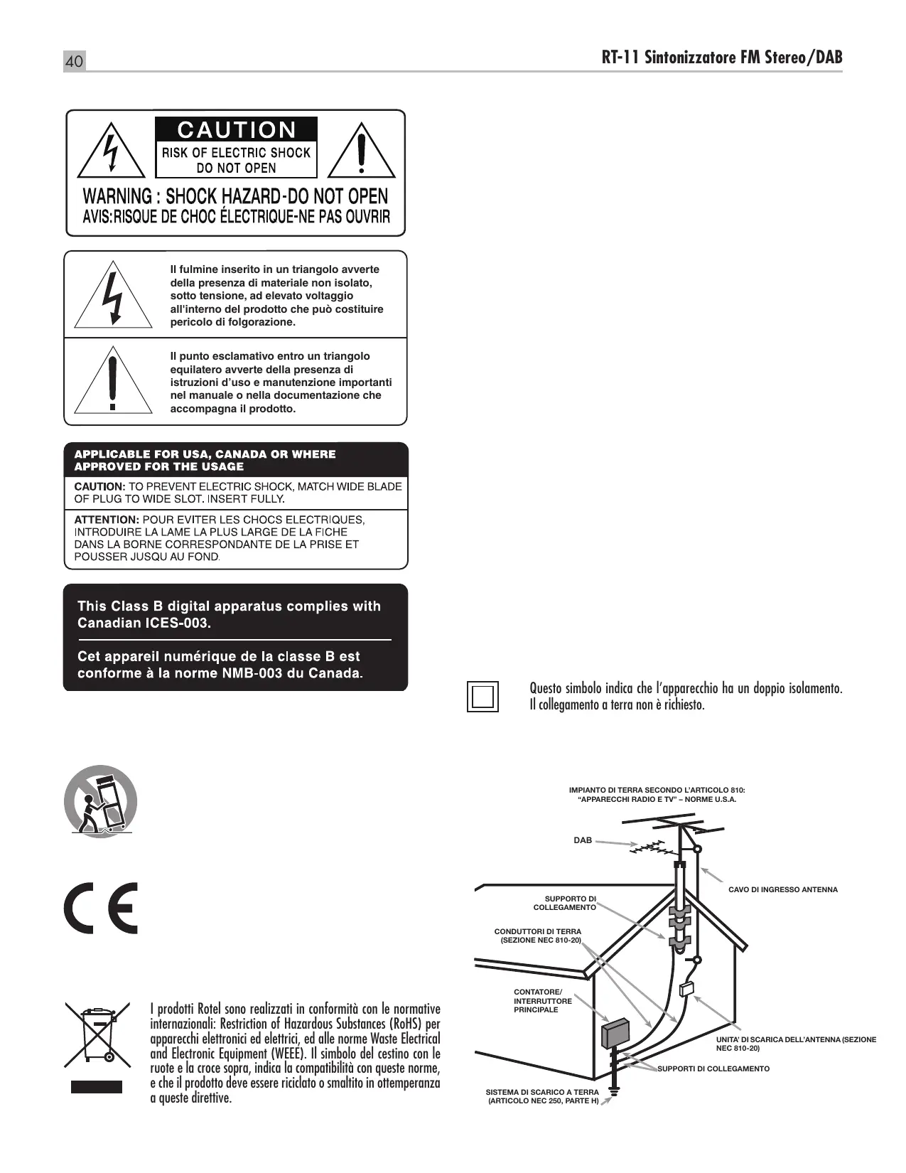 Scarica le istruzioni per il tuo in formato PDF gratuitamente! Trova il tuo manuale T11 - ROTEL e riprendi in mano il tuo dispositivo elettronico. In questa pagina sono pubblicati tutti i documenti necessari per l'utilizzo del tuo dispositivo. T11 del marchio ROTEL.