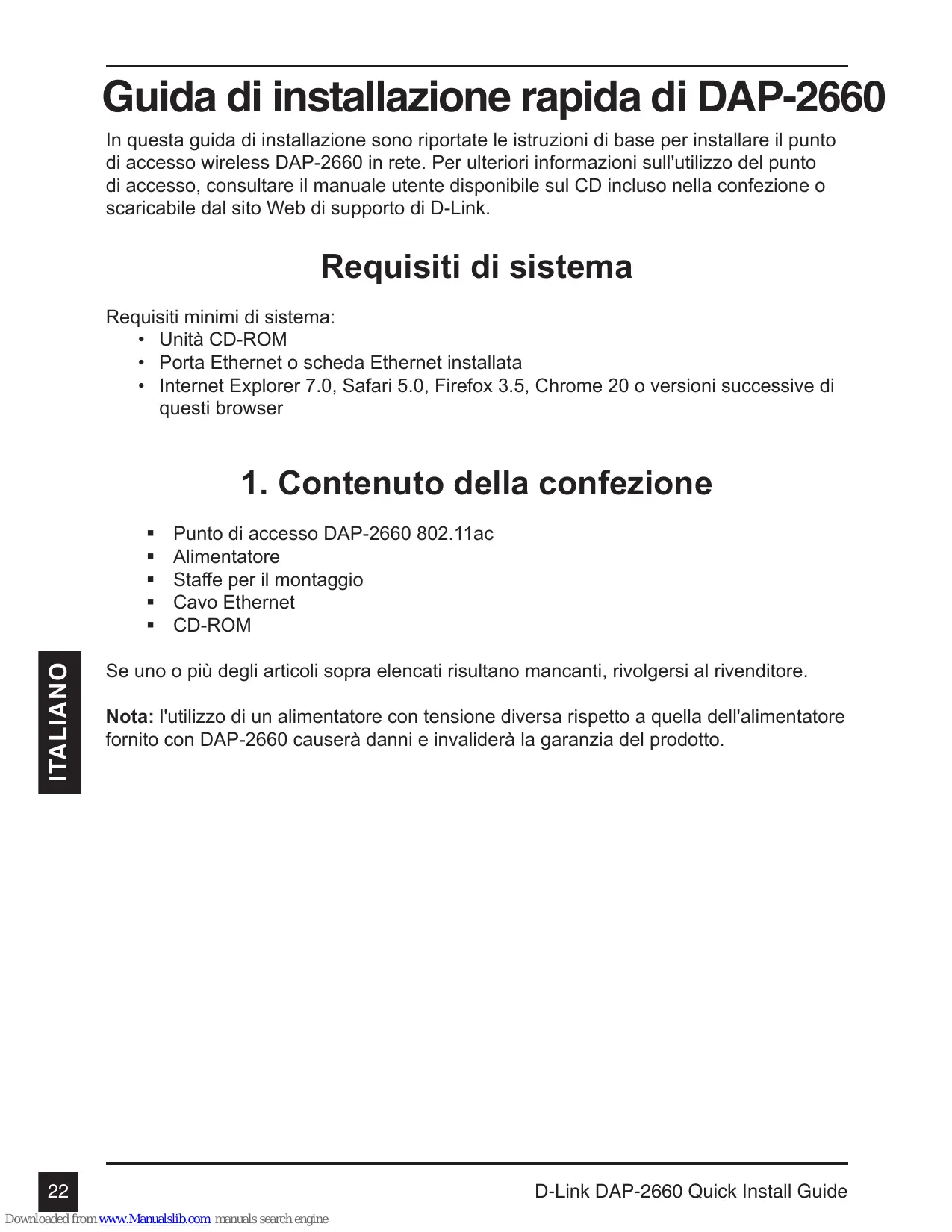 LAN del punto di accesso. D-Link DAP-2660 Quick Install Guide Downloaded from www.Manualslib.com manuals search engine ITALIANO