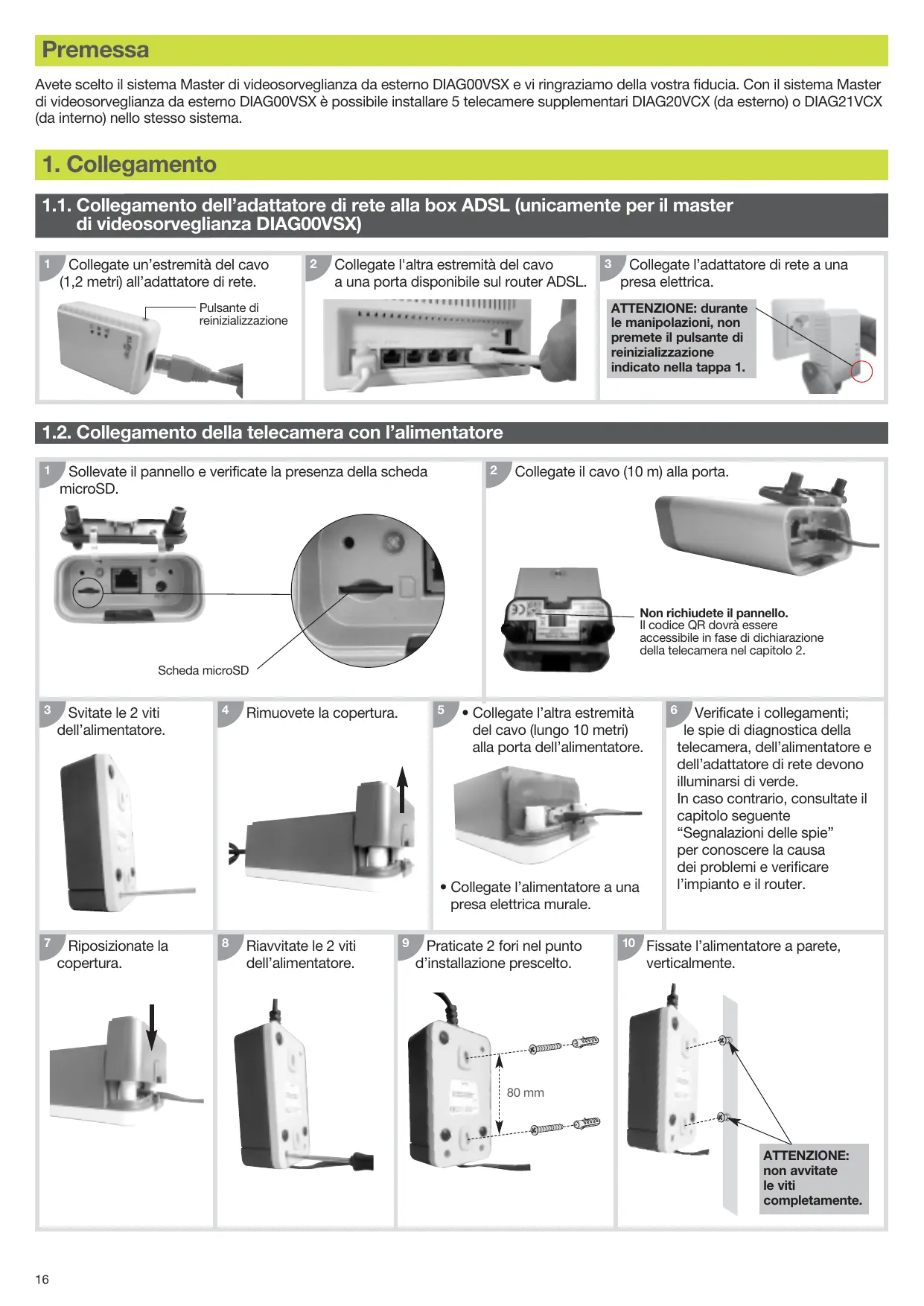 1. Collegamento 1.1. Collegamento dell’adattatore di rete alla box ADSL (unicamente per il master di videosorveglianza DIAG00VSX) 1