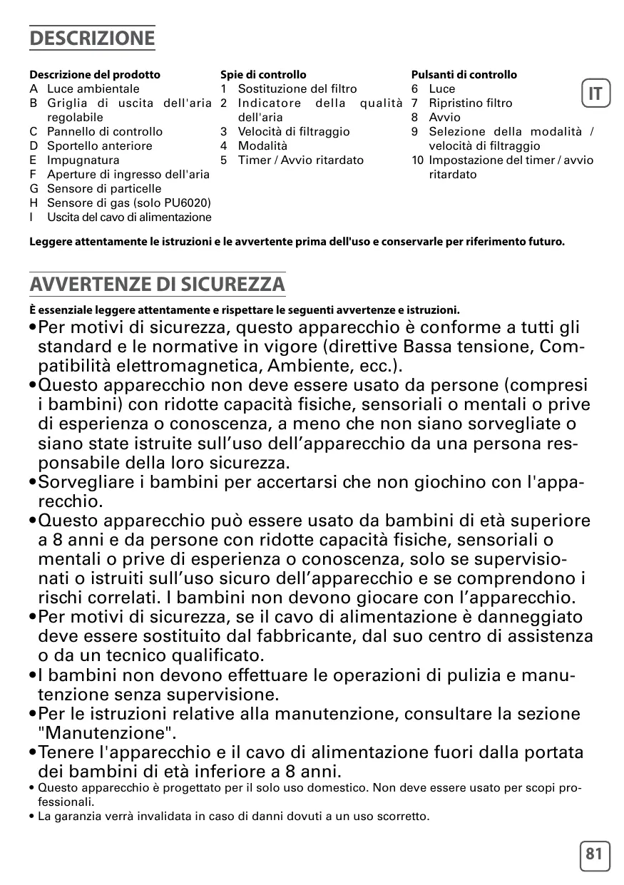 MANUALE UTENTE INTENSE PURE AIR PU4010 ROWENTA