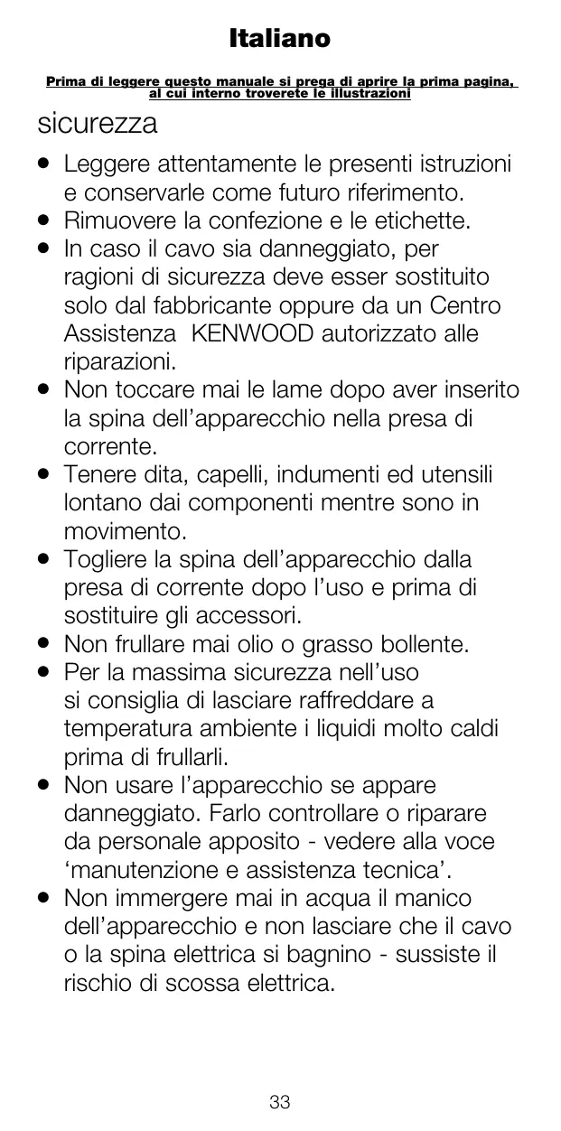 Scarica le istruzioni per il tuo Frullatore a immersione in formato PDF gratuitamente! Trova il tuo manuale HDP109 - KENWOOD e riprendi in mano il tuo dispositivo elettronico. In questa pagina sono pubblicati tutti i documenti necessari per l'utilizzo del tuo dispositivo. HDP109 del marchio KENWOOD.
