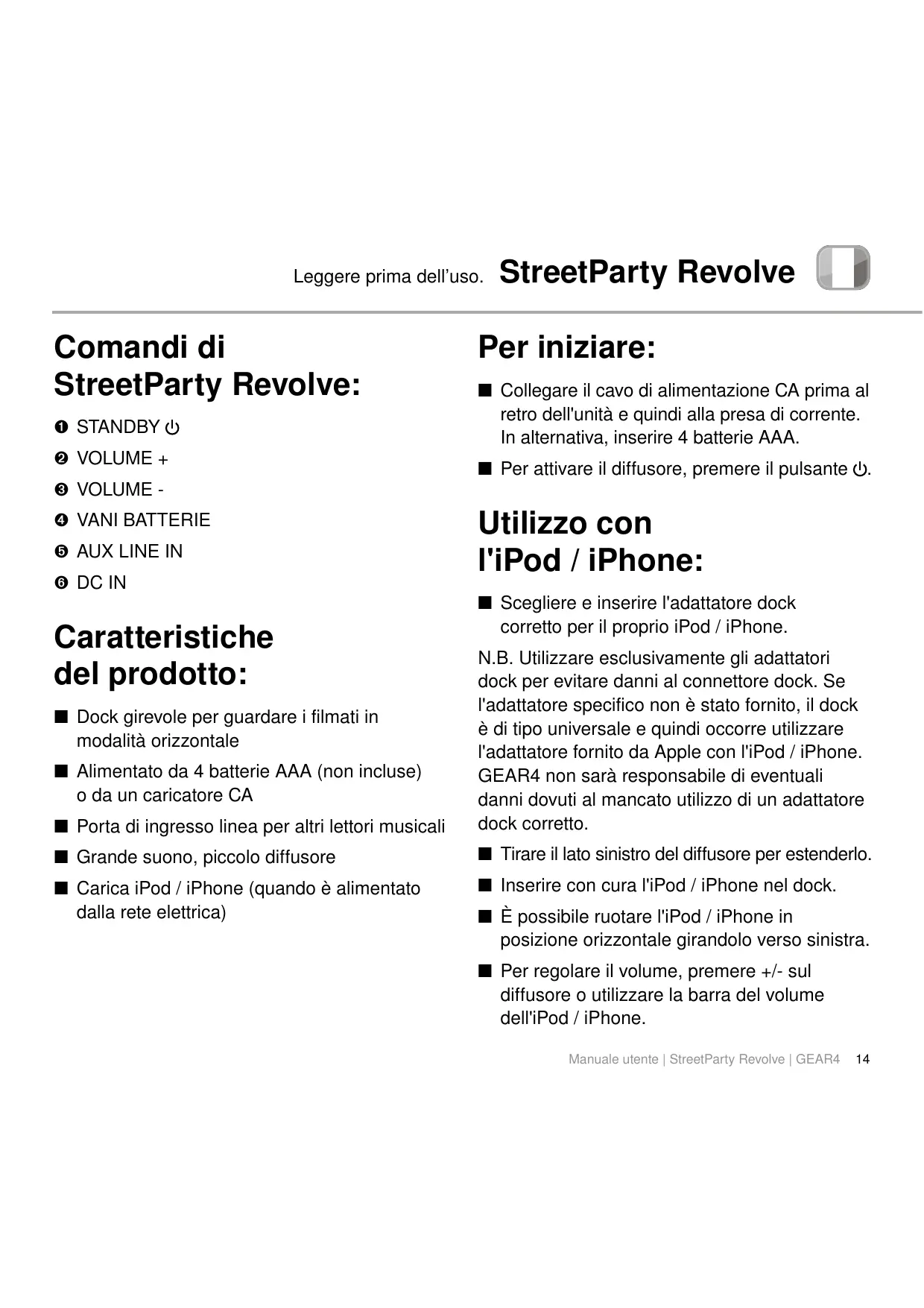 Manuale utente | StreetParty Revolve | GEAR4
