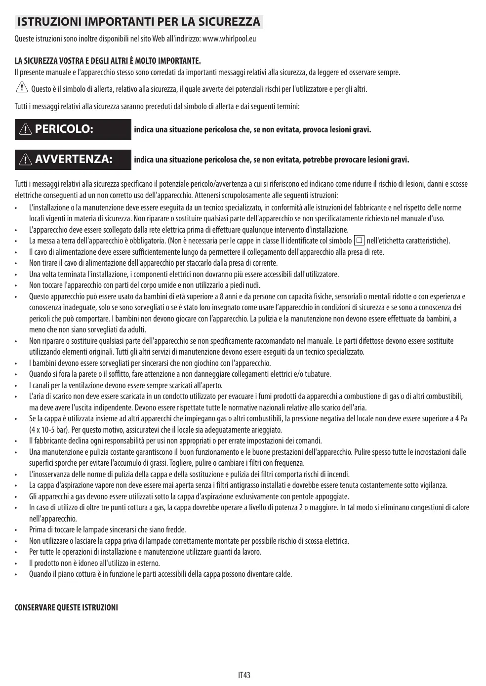 MANUALE UTENTE AKR 799/IXL WHIRLPOOL