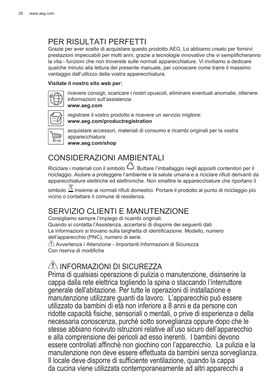 ricevered consigli, scaricare i nostri opuscoli, eliminare eventuali anomalie, ottenere informazioni sull'assistenza: www.aeg.com