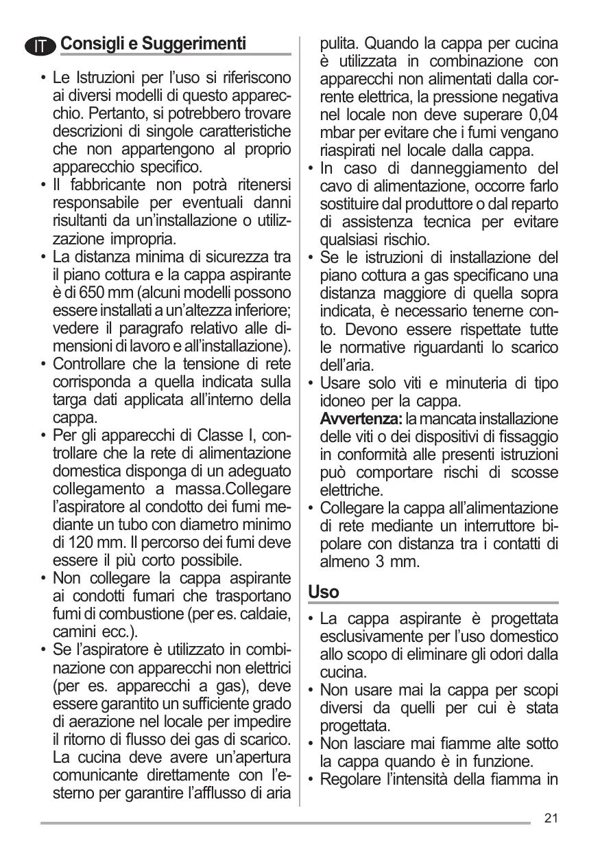 Ne pas relier la hotte aspirante aux conduits de cheminée qui ache- minent les fumées de combustion