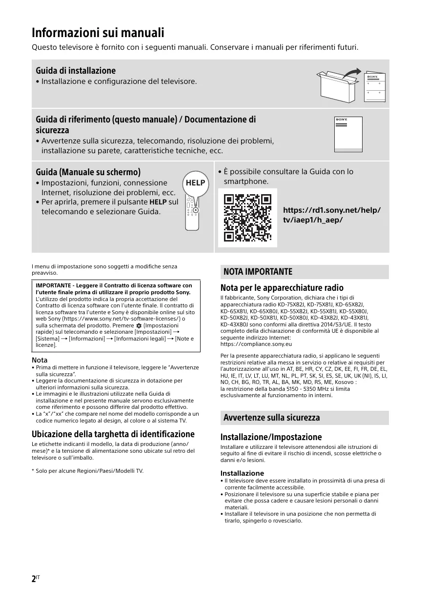KD55X89J - KD65X89J - KD75X89J - Televisore SONY - Manuale utente e istruzioni gratuiti