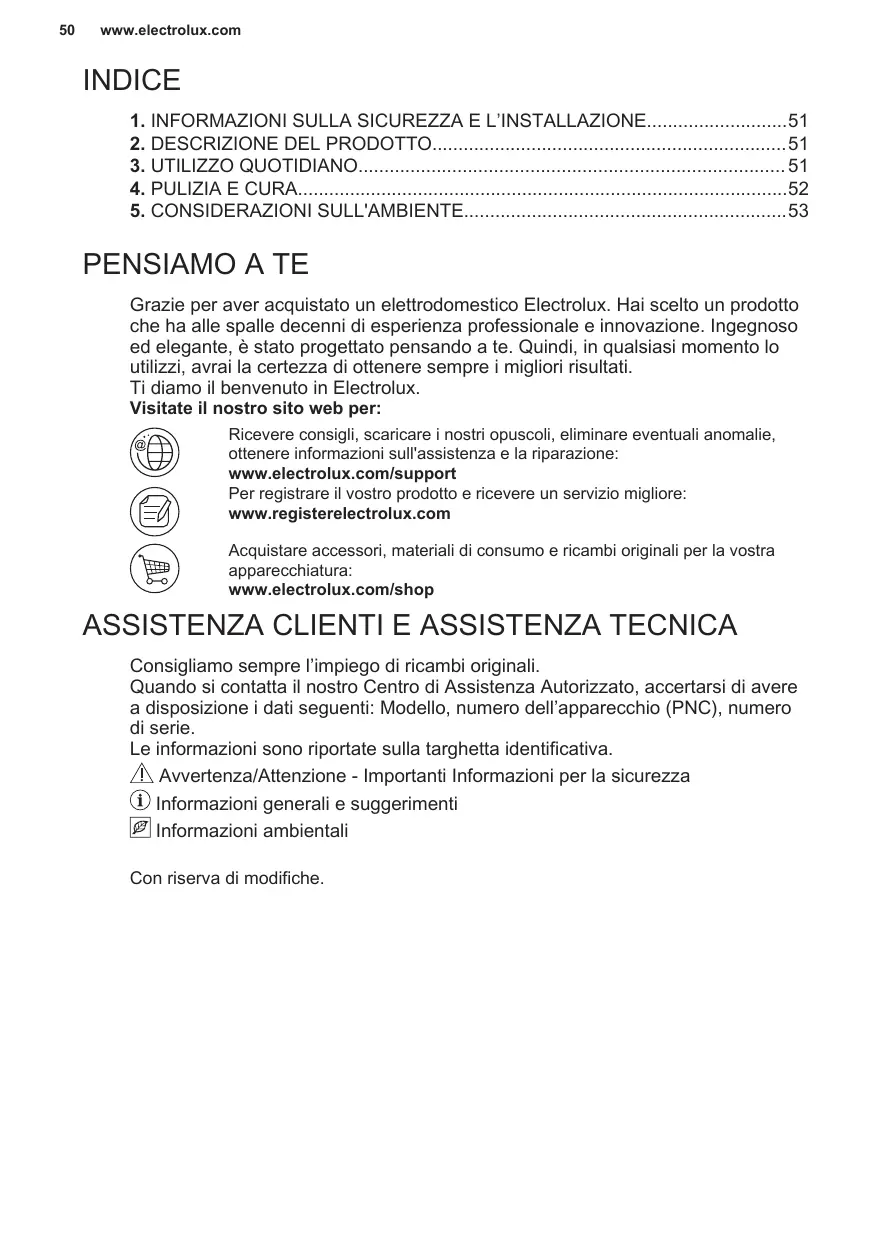 Avant de contacter notre centre de service agréé, assurez-vous de disposer des informations suivantes : Modèle, PNC, numéro de série. Ces informations figurent sur la plaque signalétique. Avertissement/Consignes de sécurité Informations générales et conseils Informations environnementales Sous réserve de modifications.