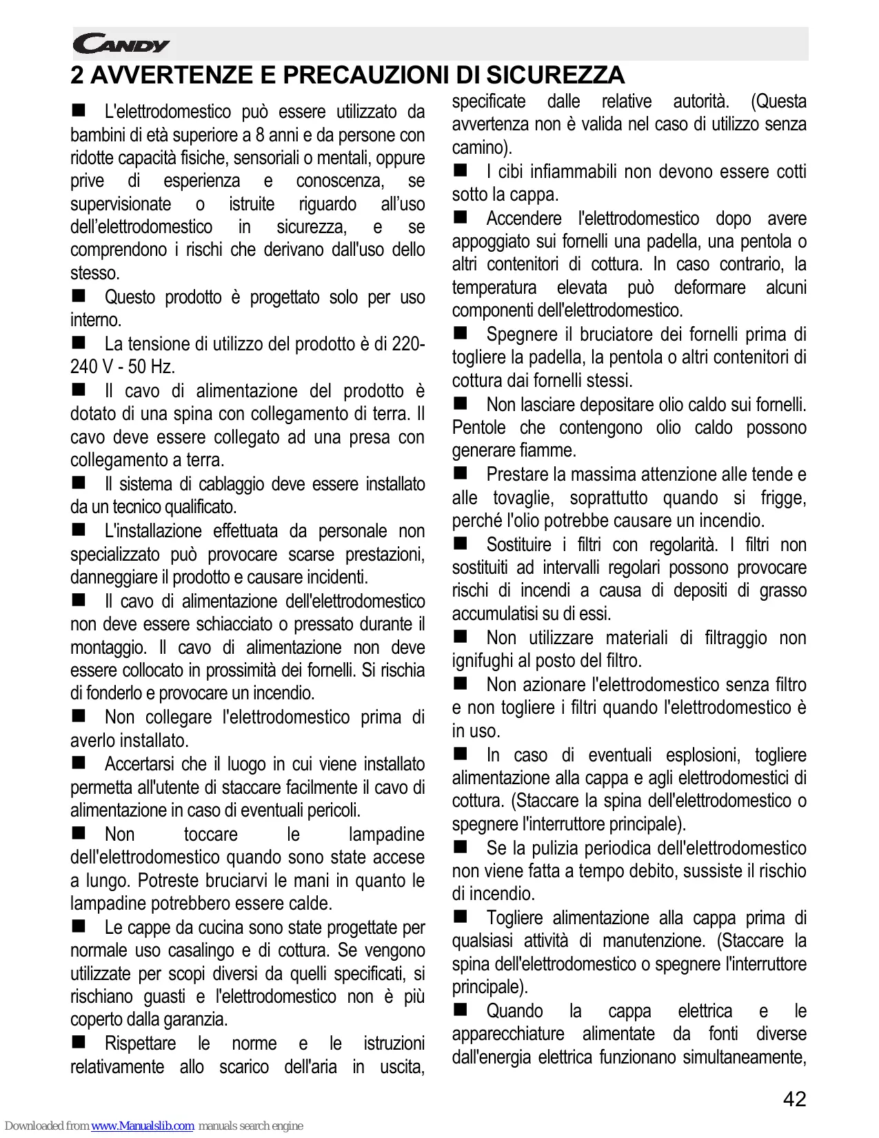 2 AVVERTENZE E PRECAUZIONI DI SICUREZZA 42