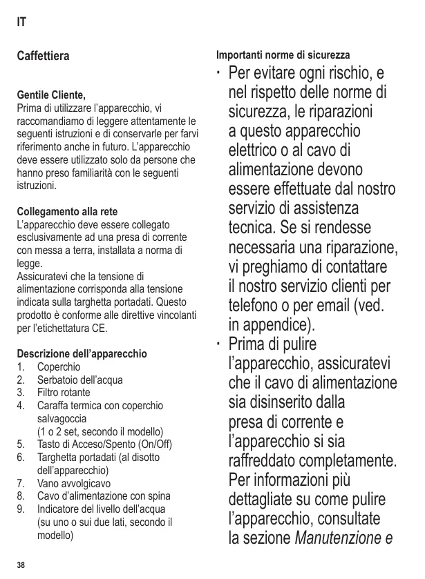 Clientèle par téléphone ou courriel (voir appendice). ∙ Avant de nettoyer l’appareil, débranchez toujours la fiche de la prise de courant et laissez l’appareil refroidir suffisamment. Pour des informations détaillées concernant le nettoyage de l’appareil, veuillez vous référer au paragraphe Entretien et nettoyage. ∙ Pour éviter le risque de chocs électriques, ne pas 17