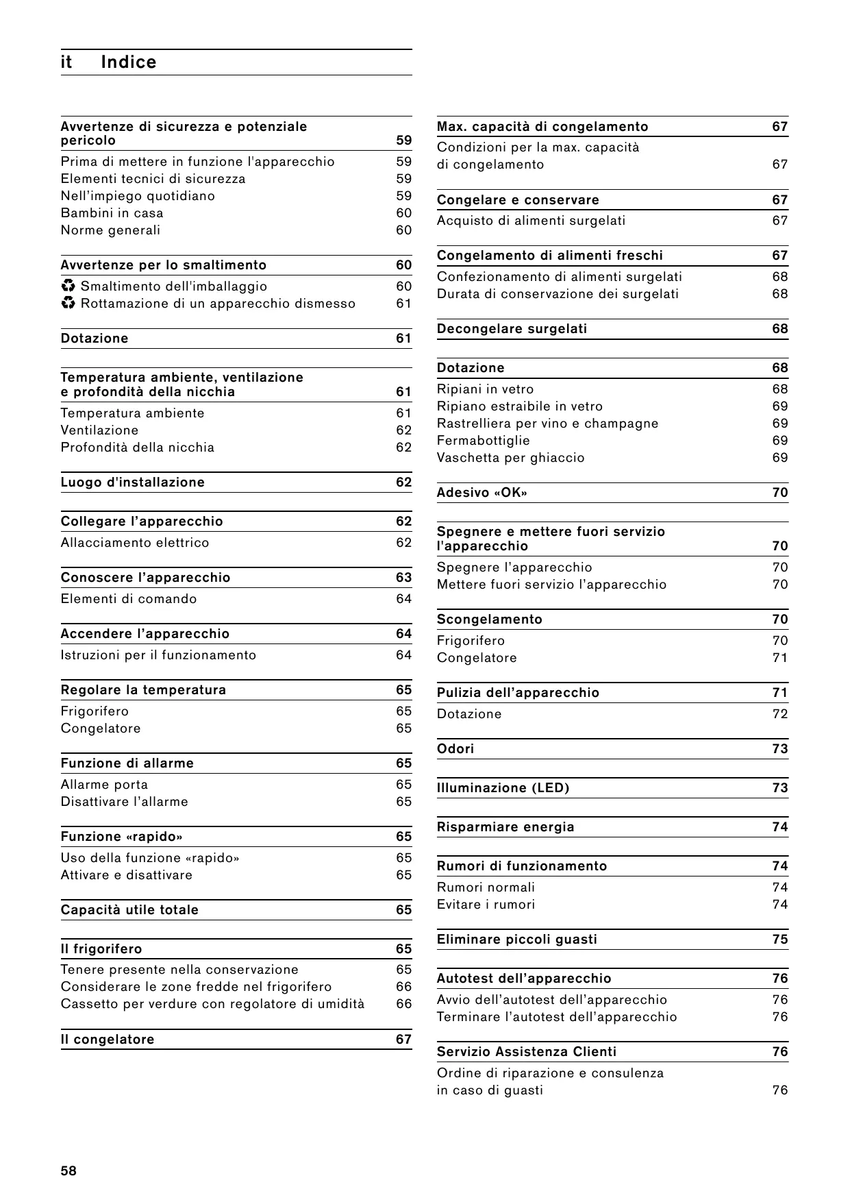 Avvertenze di sicurezza e potenziale pericolo Prima di mettere in funzione l'apparecchio Elementi tecnici di sicurezza Nell’impiego quotidiano Bambini in casa Norme generali