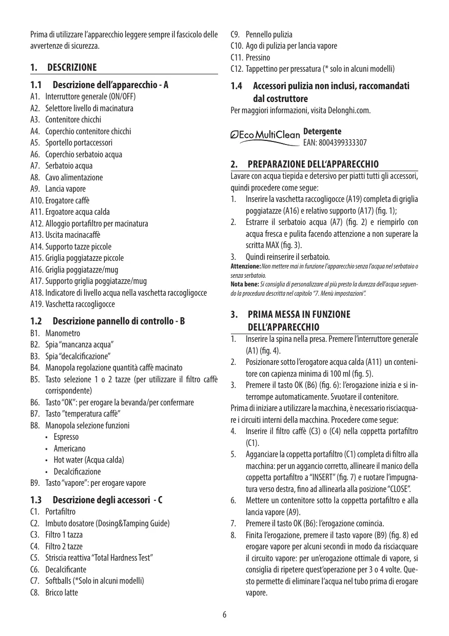 Scarica le istruzioni per il tuo Macchina da caffè in formato PDF gratuitamente! Trova il tuo manuale LA SPECIALISTA EC9155 - DELONGHI e riprendi in mano il tuo dispositivo elettronico. In questa pagina sono pubblicati tutti i documenti necessari per l'utilizzo del tuo dispositivo. LA SPECIALISTA EC9155 del marchio DELONGHI.