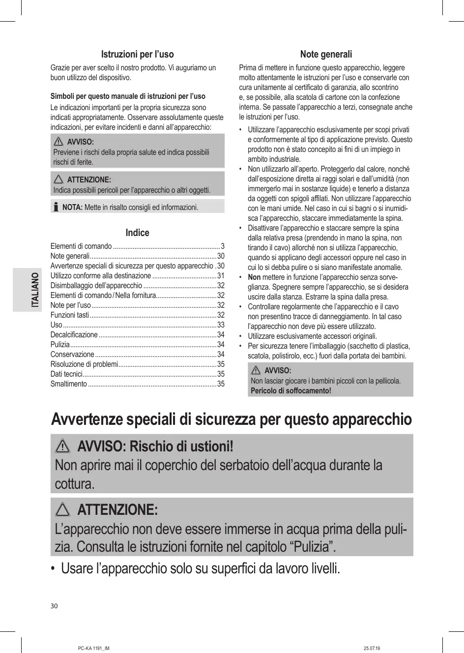 MANUALE UTENTE PC-KA1191 PROFICOOK
