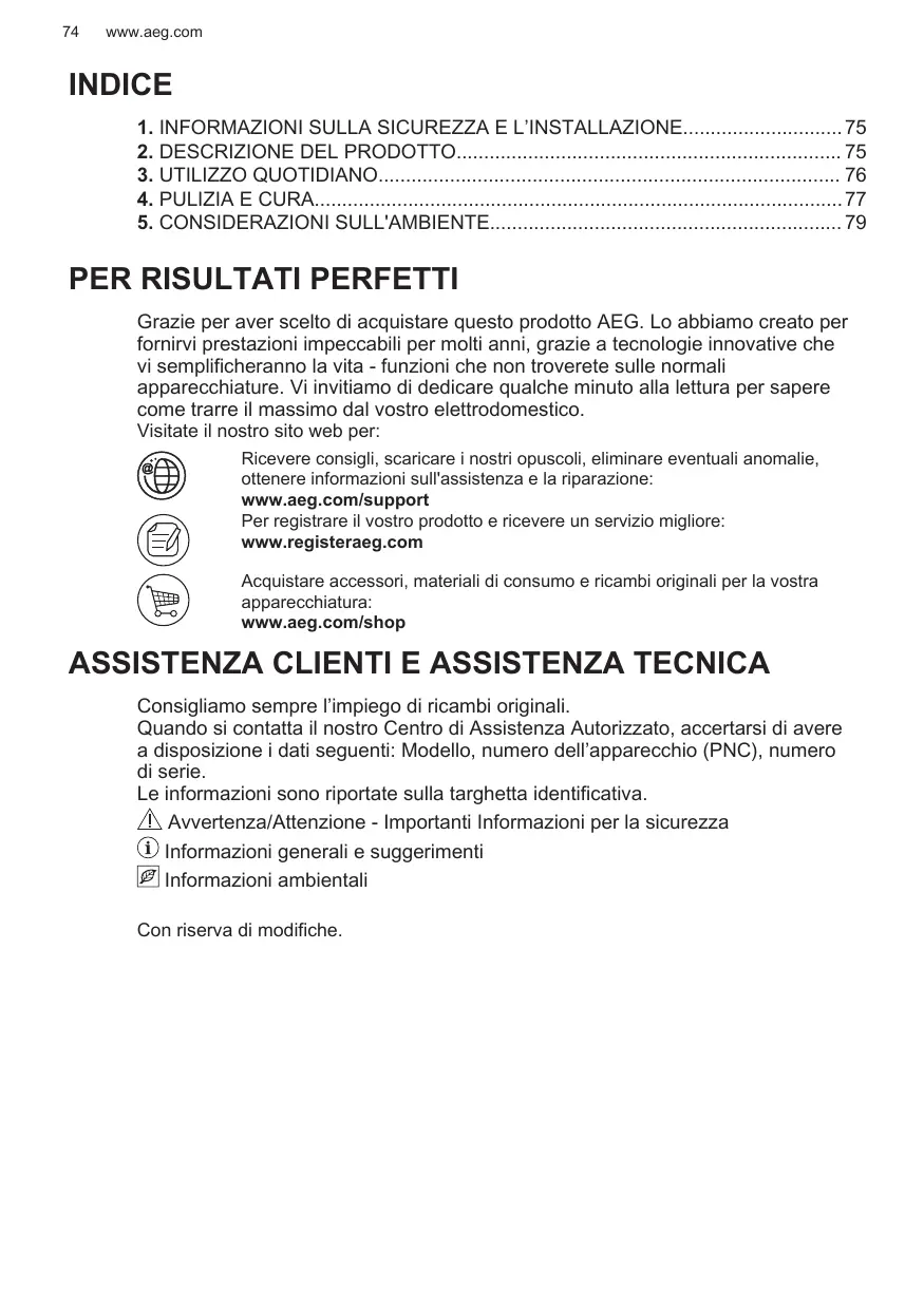 Avant de contacter notre centre de service agréé, assurez-vous de disposer des informations suivantes : Modèle, PNC, numéro de série. Ces informations figurent sur la plaque signalétique. Avertissement/Consignes de sécurité Informations générales et conseils Informations environnementales Sous réserve de modifications.