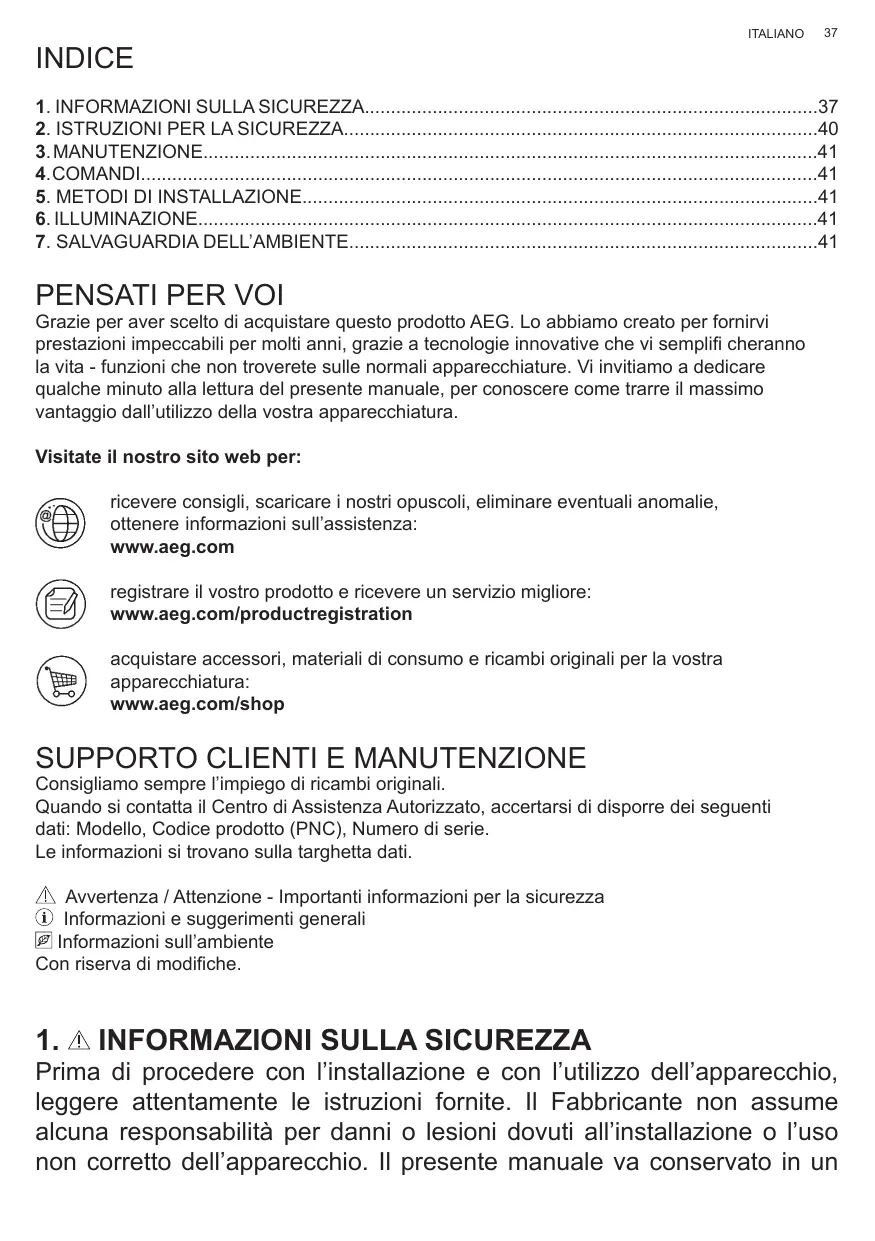Lorsque vous contactez le Service Après-Vente agréé, munissez-vous des données suivantes : Modèle, Code produit (PNC), Numéro de série. Les informations se trouvent sur la plaque des données. Avertissement / Attention – Informations importantes pour la sécurité Conseils et suggestions Informations sur l’environnement Sous réserve de modifications.