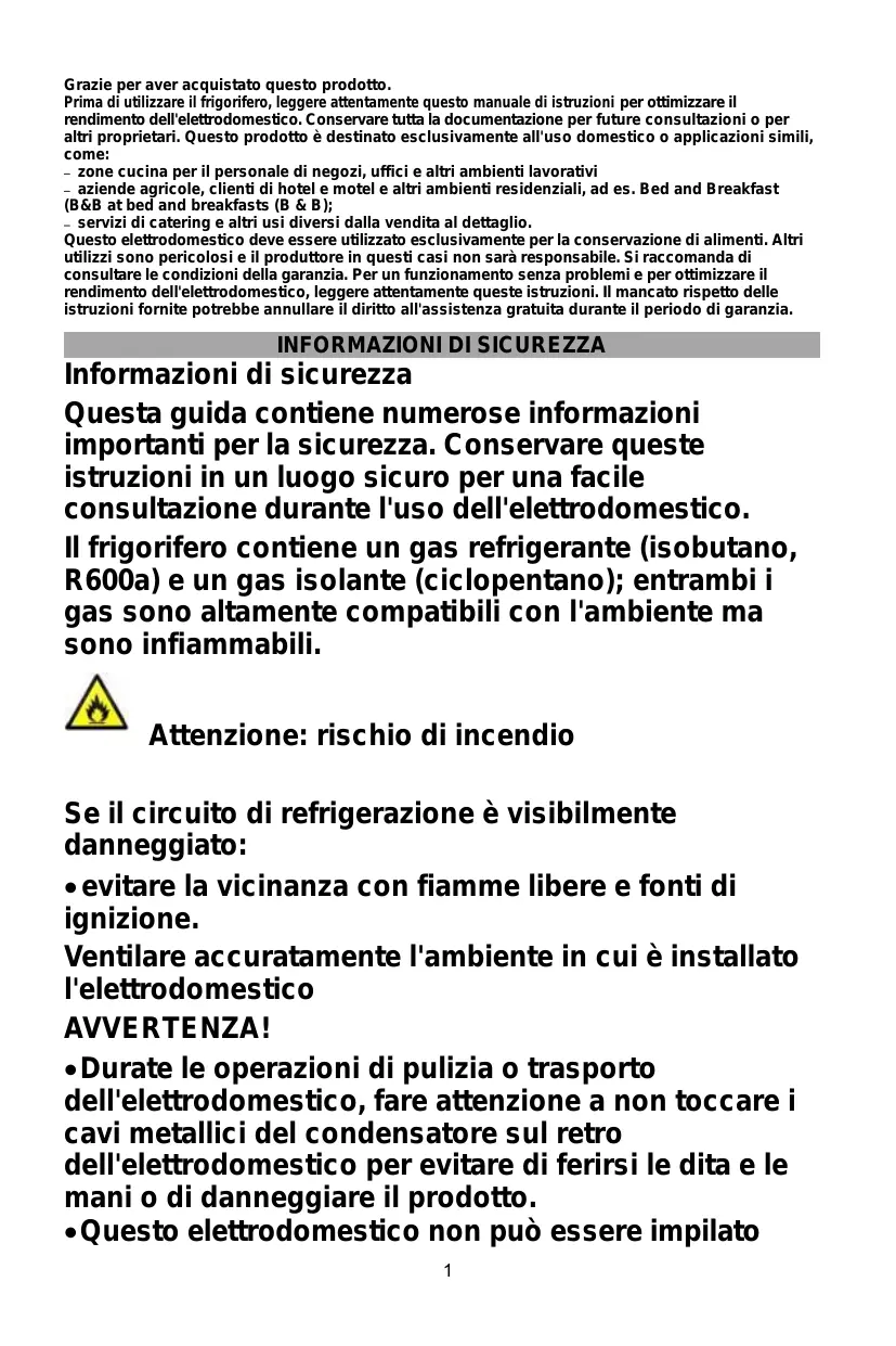 Ce guide contient de nombreuses informations importantes sur la sécurité. Nous vous suggérons de conserver ces instructions dans un endroit sûr pour une référence ultérieure aisée et une bonne utilisation de l’appareil. Ce réfrigérateur contient un gaz réfrigérant (R600a : isobutane) et un gaz isolant (cyclopentane), qui présentent une compatibilité élevée avec l'environnement mais des propriétés inflammables. Attention : risque d'incendie En cas de dommages du circuit de réfrigérant :  Éviter des flammes ouvertes et des sources d'inflammation. Bien aérer la pièce dans laquelle se trouve l'appareil. AVERTISSEMENT !  Il convient de prêter une attention particulière lors du nettoyage/du transport de l’appareil pour éviter de toucher les fils métalliques du condenseur à l’arrière de l’appareil, en raison du risque de blessures aux doigts et aux mains et du risque de détérioration de l’appareil.  Cet appareil n'est pas conçu pour être empilé avec un autre appareil. Ne pas essayer de s'asseoir ou de se tenir debout sur le dessus de votre appareil étant 58