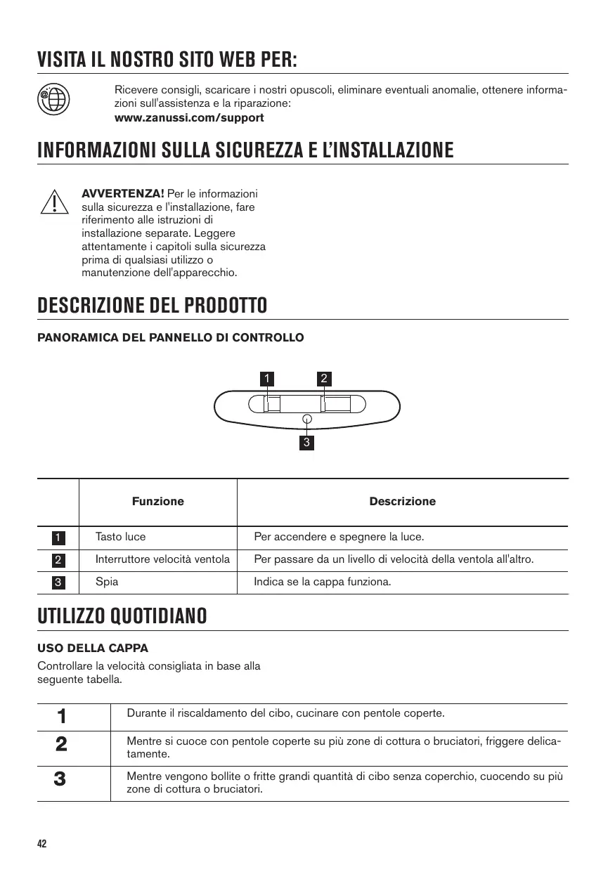 VISITA IL NOSTRO SITO WEB PER: Ricevere consigli, scaricare i nostri opuscoli, eliminare eventuali anomalie, ottenere informazioni sull'assistenza e la riparazione: www.zanussi.com/support