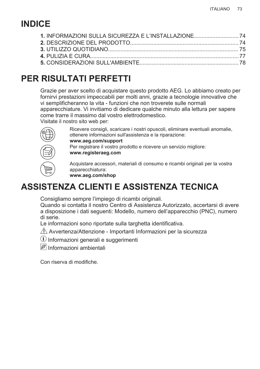 Avant de contacter notre centre de service agréé, assurez-vous de disposer des informations suivantes : Modèle, PNC, numéro de série. Ces informations figurent sur la plaque signalétique. Avertissement/Consignes de sécurité Informations générales et conseils Informations environnementales Sous réserve de modifications.