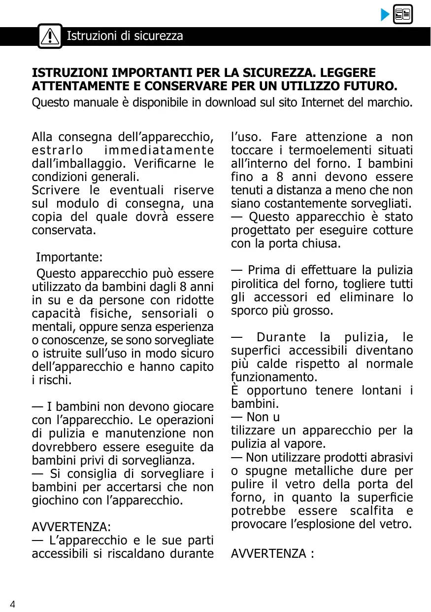 Sur la porte ouverte du four, ne posez pas de charges lourdes, et assurez vous qu’un enfant ne puisse ni monter ni s’asseoir. Ne vous servez pas de votre four comme garde-manger ou pour stocker quelconques éléments après utilisation. Après utilisation de votre four, assurez-vous que toutes les commandes se trouvent sur la position arrêt. Pour toute intervention de nettoyage dans la cavité du four, le four doit être arrêté. Avant de procéder au déclippage de la glace, laissez refroidir l’appareil.