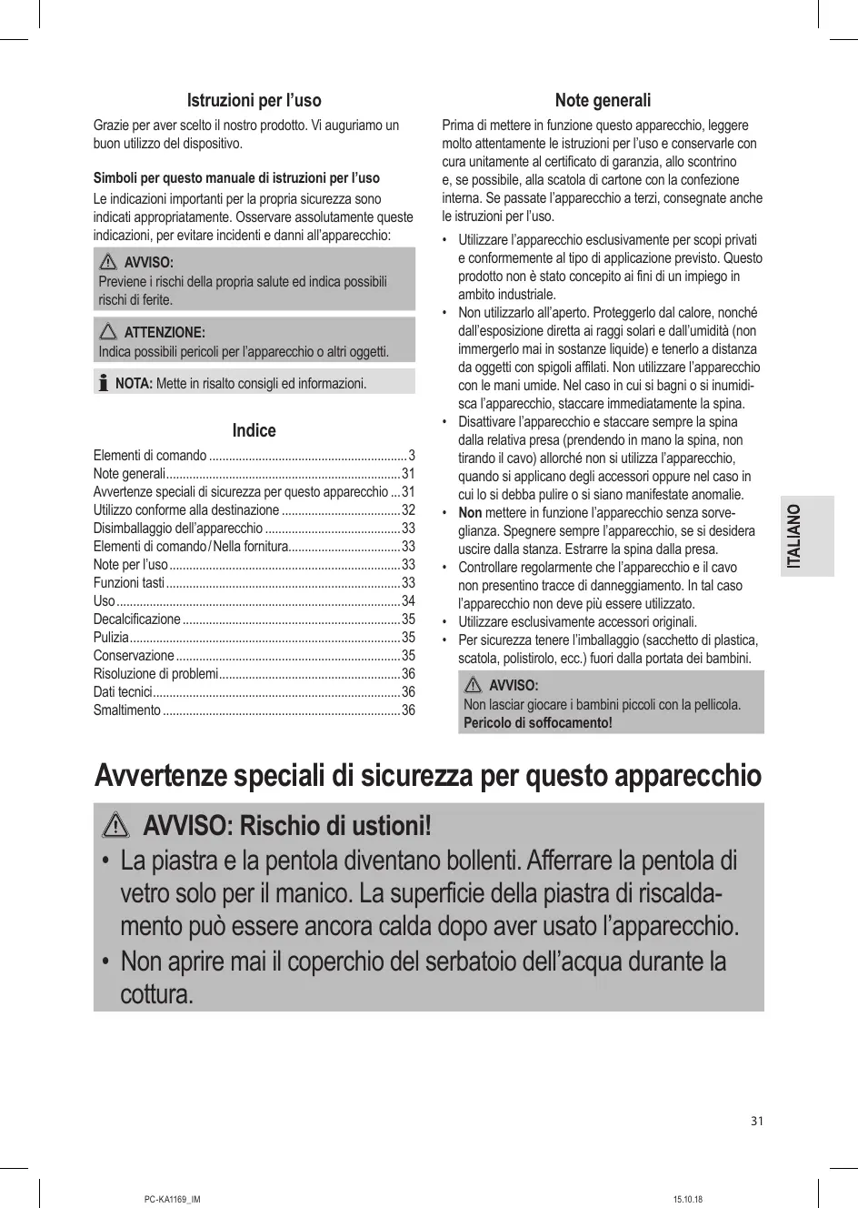 MANUALE UTENTE PC-KA1169 PROFICOOK