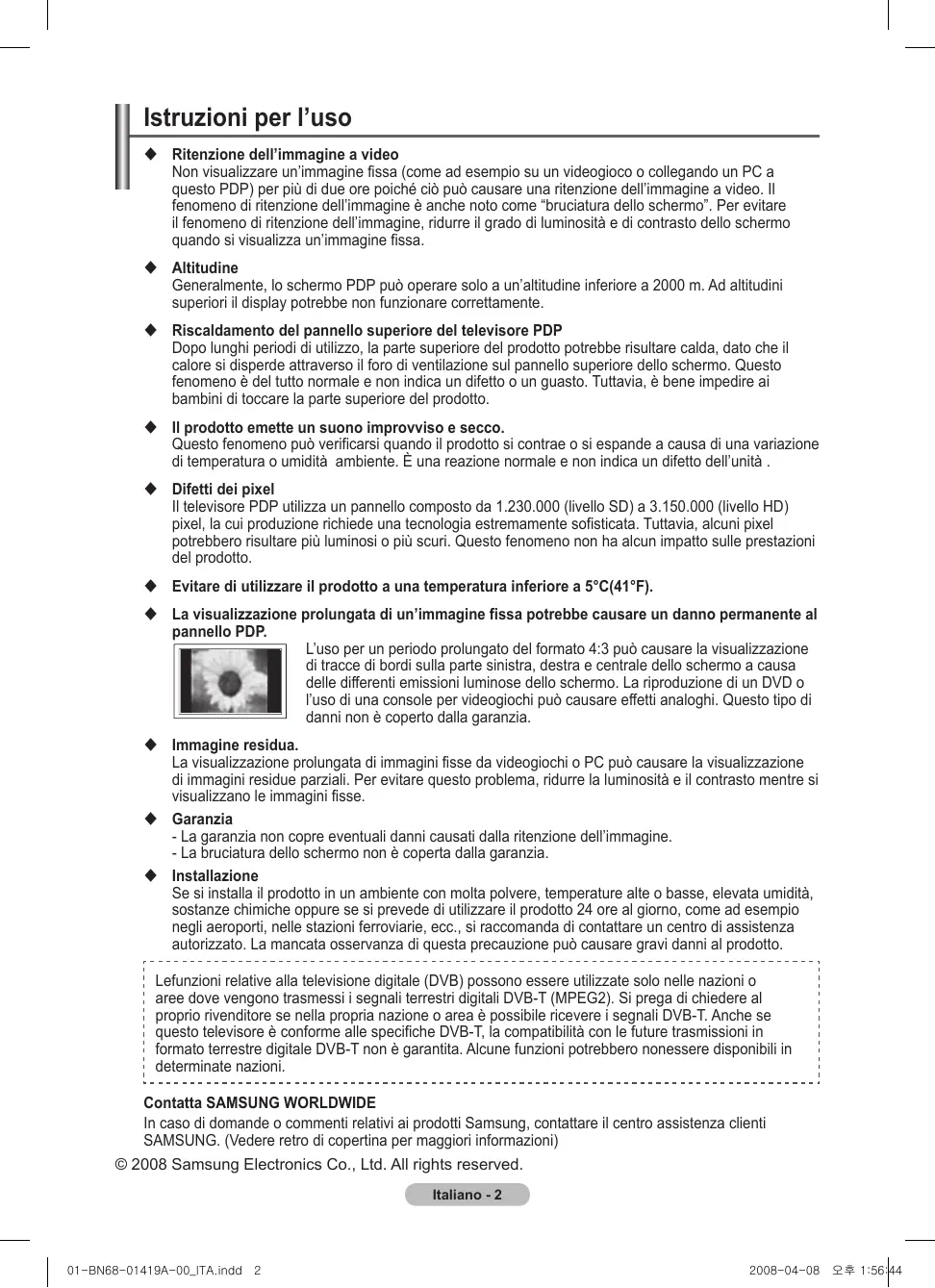 Scarica le istruzioni per il tuo Televisore in formato PDF gratuitamente! Trova il tuo manuale PS42A416 - SAMSUNG e riprendi in mano il tuo dispositivo elettronico. In questa pagina sono pubblicati tutti i documenti necessari per l'utilizzo del tuo dispositivo. PS42A416 del marchio SAMSUNG.