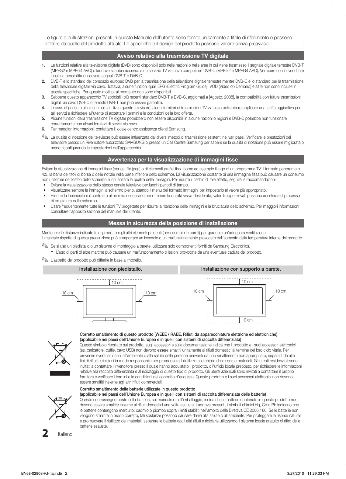 2010-03-27 9:54:04 Cette page est laissée intentionnellement vierge. BN68-02808AFH-Fre.indb 62 2010-03-27 9:54:04 Le figure e le illustrazioni presenti in questo Manuale dell’utente sono fornite unicamente a titolo di riferimento e possono differire da quelle del prodotto attuale. Le specifiche e il design del prodotto possono variare senza preavviso. Avviso relativo alla trasmissione TV digitale