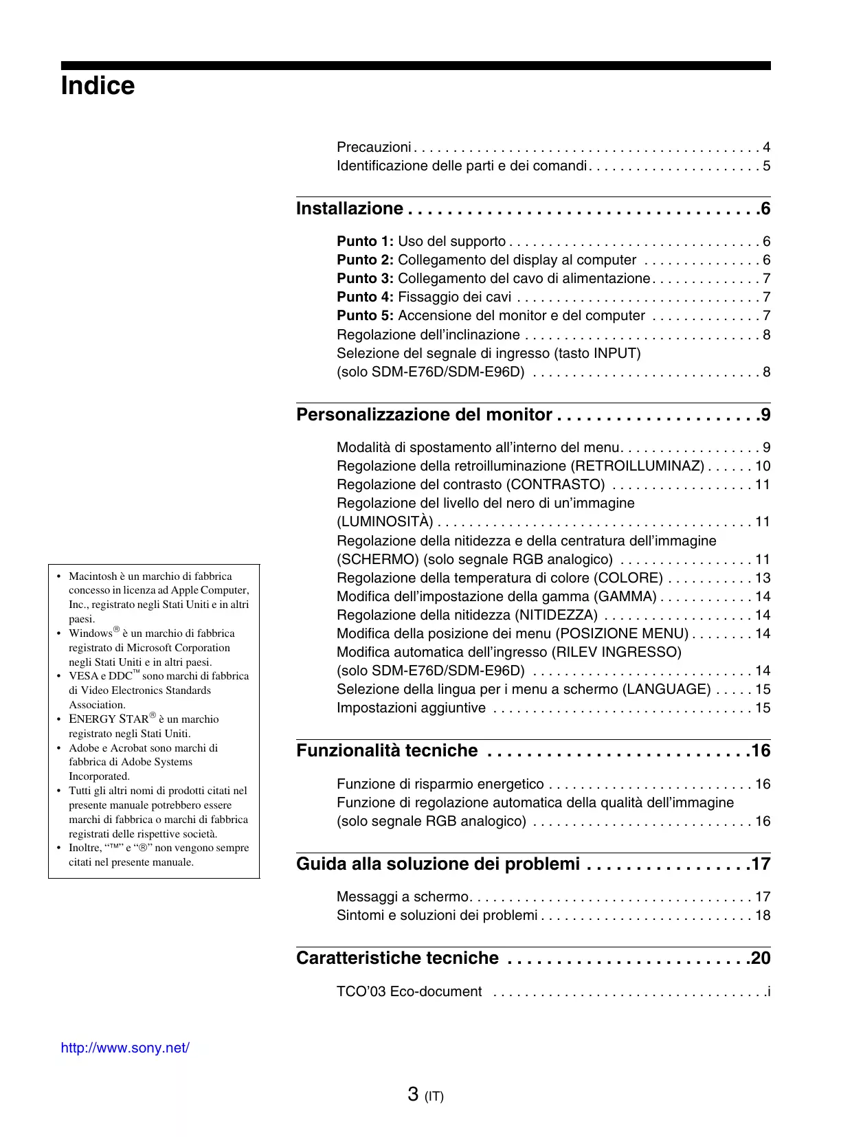 Scarica le istruzioni per il tuo Schermo per computer in formato PDF gratuitamente! Trova il tuo manuale NC - SONY e riprendi in mano il tuo dispositivo elettronico. In questa pagina sono pubblicati tutti i documenti necessari per l'utilizzo del tuo dispositivo. NC del marchio SONY.