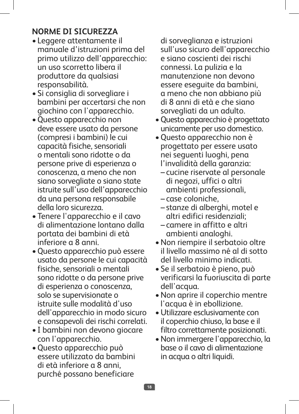 Au fur et à mesure qu’ils grandissent, apprenez à vos enfants à faire attention aux liquides chauds pouvant se trouver dans une cuisine. Placez bouilloire et cordon bien à l’arrière du plan de travail, hors de portée des enfants. Si un accident se produit, passez de l’eau froide immédiatement sur la brûlure et appelez un médecin si nécessaire. • Afin d’éviter tout accident : ne portez pas votre enfant ou bébé lorsque vous buvez ou transportez une boisson chaude.