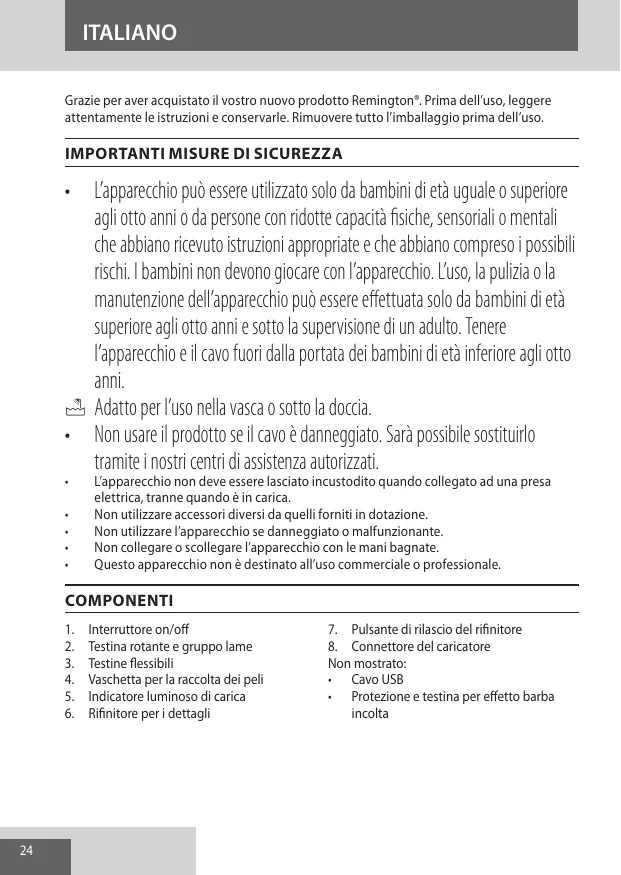 MANUALE UTENTE PR1855 REMINGTON