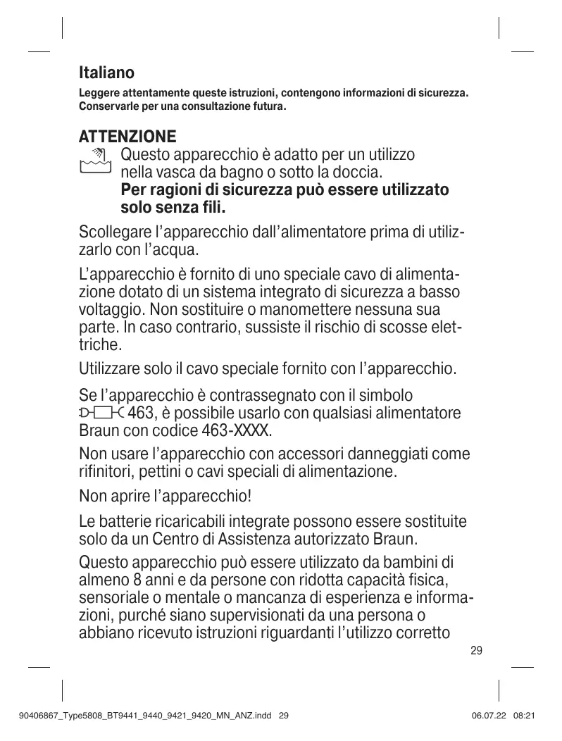 Le batterie ricaricabili integrate possono essere sostuite solo da un Centro di Assistenza autorizzato Braun.