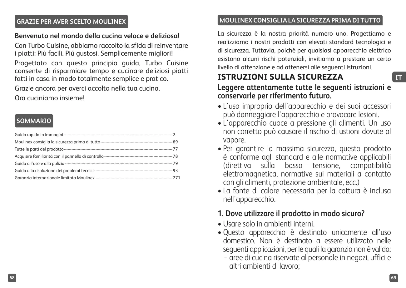 Moulinex fait de la sécurité une priorité-------------------------------------------------------------------9 Détail des éléments composant votre produit----------------------------------------------------------17 Découverte de l’interface utilisateur------------------------------------------------------------------------18 Guide d'utilisation et de nettoyage-------------------------------------------------------------------------19 Guide de dépannage technique------------------------------------------------------------------------------35 Garantie limitée internationale de Moulinex------------------------------------------------------------271