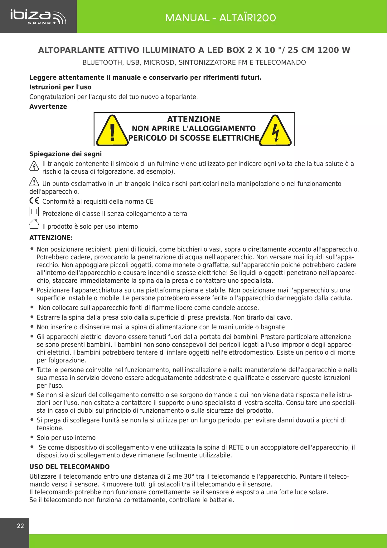 Scarica le istruzioni per il tuo Haut_parleur in formato PDF gratuitamente! Trova il tuo manuale ALTAIR1200 - IDIIZS e riprendi in mano il tuo dispositivo elettronico. In questa pagina sono pubblicati tutti i documenti necessari per l'utilizzo del tuo dispositivo. ALTAIR1200 del marchio IDIIZS.