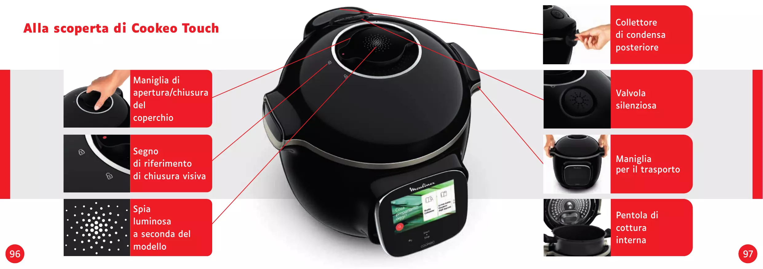 Durante il primo utilizzato del Cookeo Touch, il recipiente più rilasciare un lieve odore. Si tratta di un fenomeno normale.