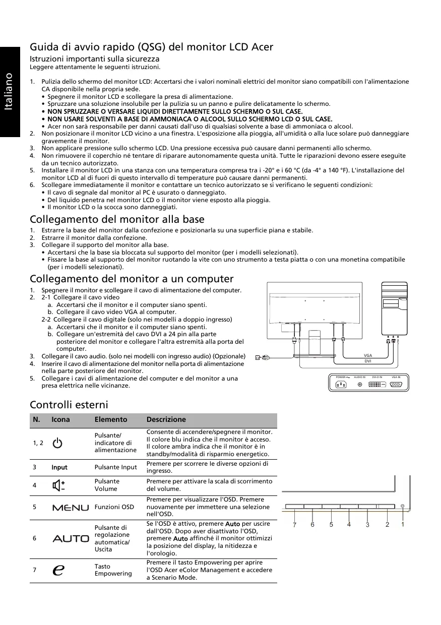 VA190HQ - Schermo per computer ACER - Manuale utente e istruzioni gratuiti