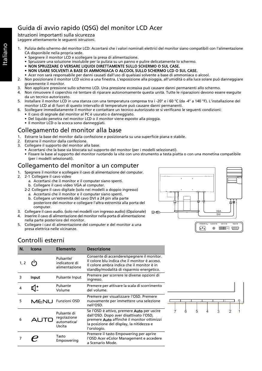 Scarica le istruzioni per il tuo Schermo in formato PDF gratuitamente! Trova il tuo manuale VA200HQ - ACER e riprendi in mano il tuo dispositivo elettronico. In questa pagina sono pubblicati tutti i documenti necessari per l'utilizzo del tuo dispositivo. VA200HQ del marchio ACER.