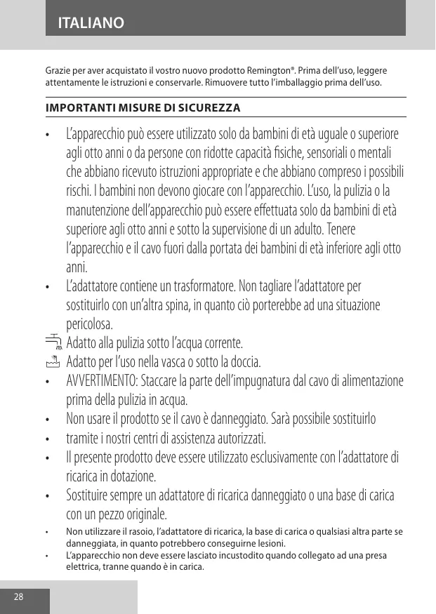 XR1500 - Rasoio REMINGTON - Manuale utente e istruzioni gratuiti