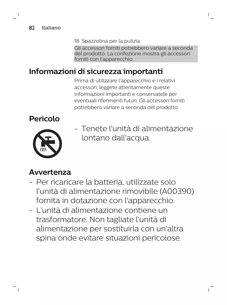- Este símbolo significa que este producto no debe desecharse con la basura normal del hogar (2012/19/UE). Afin d'éviter tout accident, n'utilisez pas l'appareil s'il est endommagé. Remplacez toujours une pièce endommagée par une pièce du même type. - N'ouvrez pas l'appareil pour remplacer la pile rechargeable.