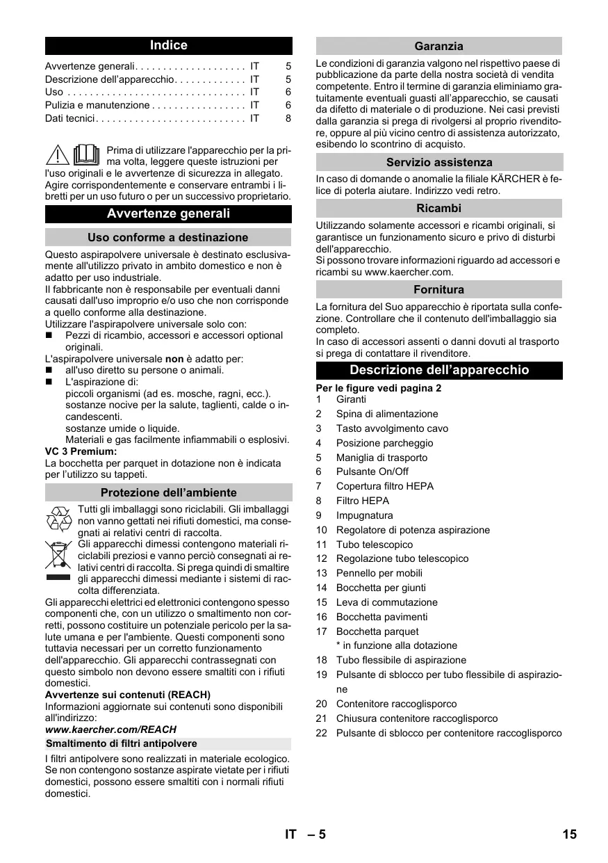 MANUALE UTENTE VCS KARCHER