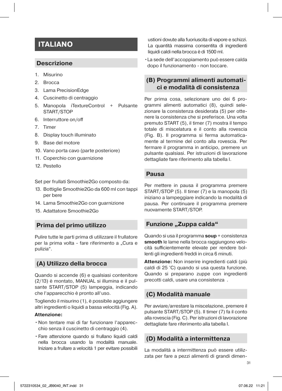Scarica le istruzioni per il tuo Frullatore in formato PDF gratuitamente! Trova il tuo manuale JB9040 - BRAUN e riprendi in mano il tuo dispositivo elettronico. In questa pagina sono pubblicati tutti i documenti necessari per l'utilizzo del tuo dispositivo. JB9040 del marchio BRAUN.