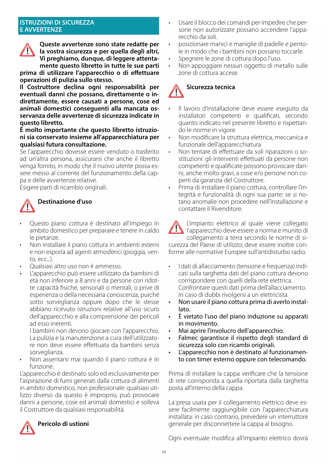 Scarica le istruzioni per il tuo Induction in formato PDF gratuitamente! Trova il tuo manuale BRERA3420 - FALMEC e riprendi in mano il tuo dispositivo elettronico. In questa pagina sono pubblicati tutti i documenti necessari per l'utilizzo del tuo dispositivo. BRERA3420 del marchio FALMEC.