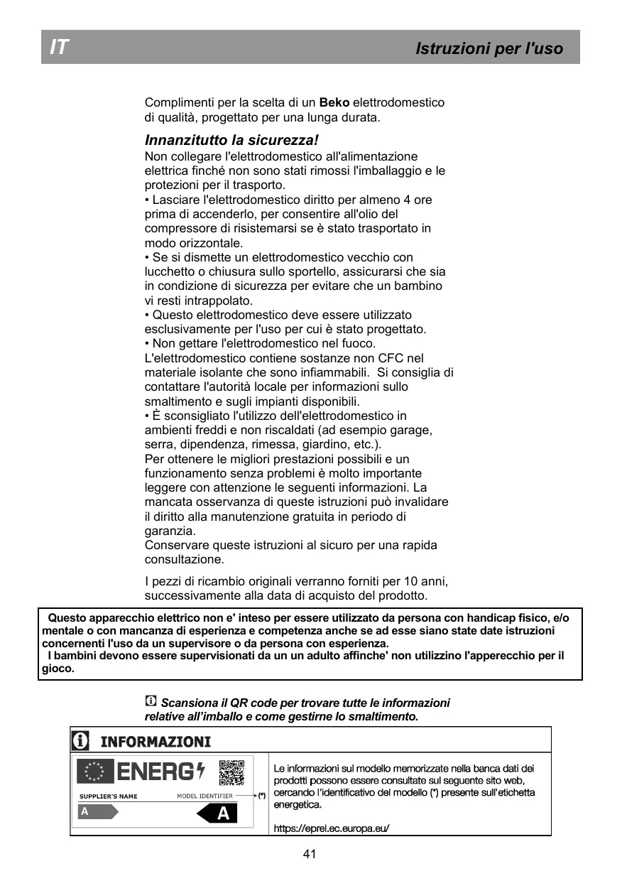 Scarica le istruzioni per il tuo Frigorifero in formato PDF gratuitamente! Trova il tuo manuale RDSA240K40WN - BEKO e riprendi in mano il tuo dispositivo elettronico. In questa pagina sono pubblicati tutti i documenti necessari per l'utilizzo del tuo dispositivo. RDSA240K40WN del marchio BEKO.