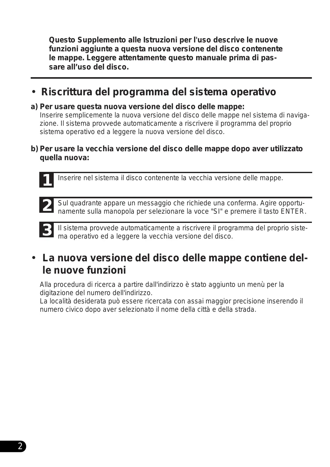 Questo Supplemento alle Istruzioni per l'uso descrive le nuove funzioni aggiunte a questa nuova versione del disco contenente le mappe. Leggere attentamente questo manuale prima di passare all’uso del disco.