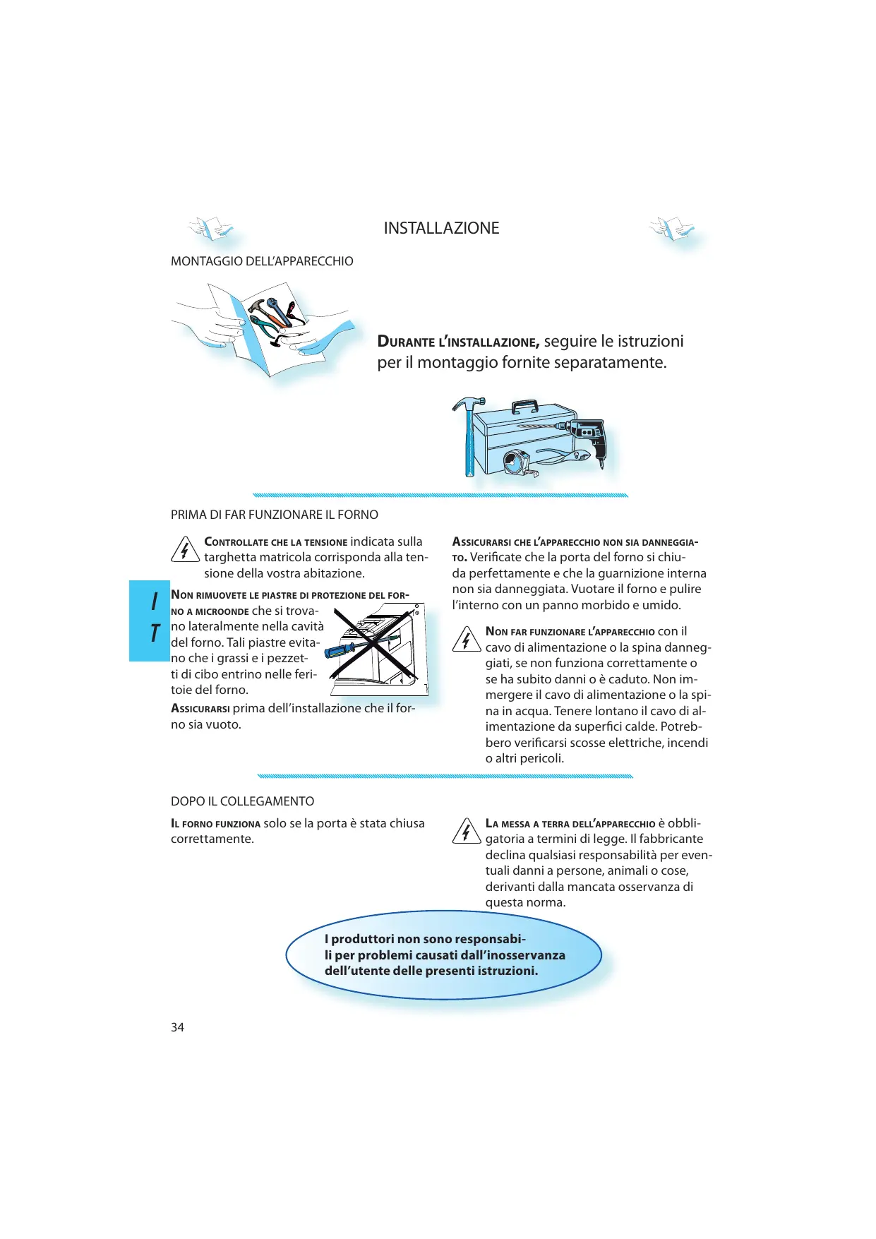 I produttori non sono responsabili per problemi causati dall’inosservanza dell’utente delle presenti istruzioni.